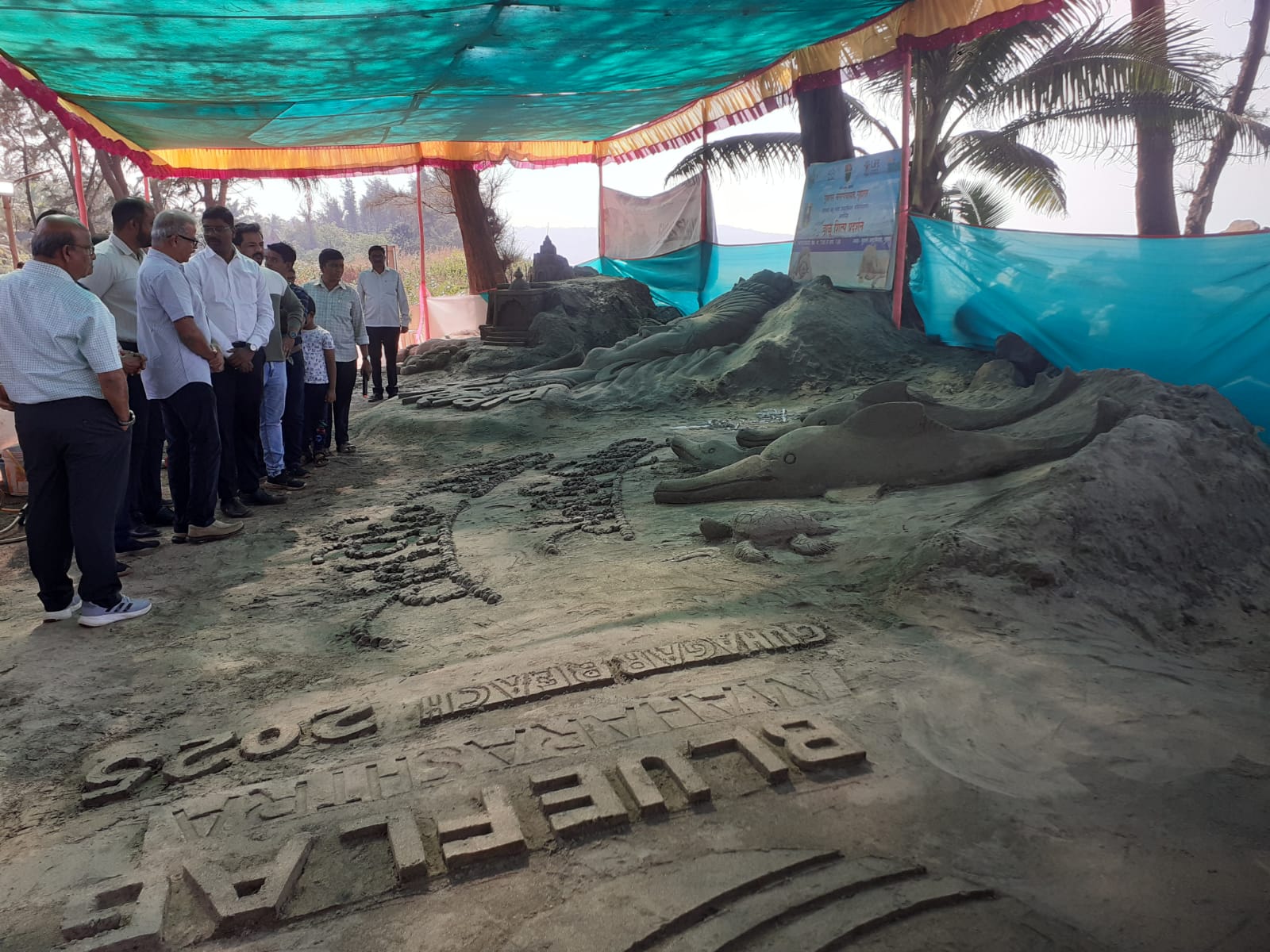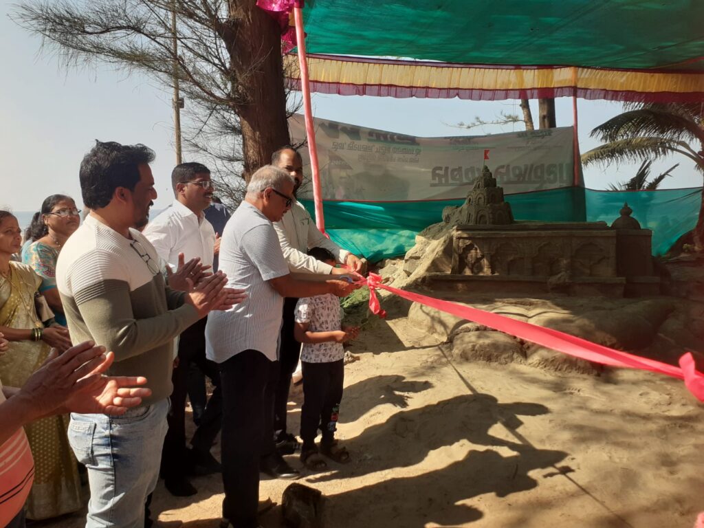 गुहागर नगरपंचायतीचे मुख्याधिकारी स्वप्निल चव्हाण यांच्या मार्गदर्शनाखाली या वाळू शिल्प कलेचे प्रदर्शन भरवण्यात आले आहे. मुख्याधिकारी स्वप्निल चव्हाण यांच्या हस्ते श्रीफळ वाढवून तर ब्लू फ्लॅग प्रकल्प सहाय्यक दीपक विचारे यांच्या हस्ते फीत कापून या वाळू शिल्प प्रदर्शनाचे उद्घाटन करण्यात आले यावेळी तहसीलदार परीक्षित पाटील, नरेश पेडणेकर, गटविकास अधिकारी शेखर भिलारे एडवोकेट संकेत साळवी पत्रकार सत्यवान घाडे आदी उपस्थित होते.