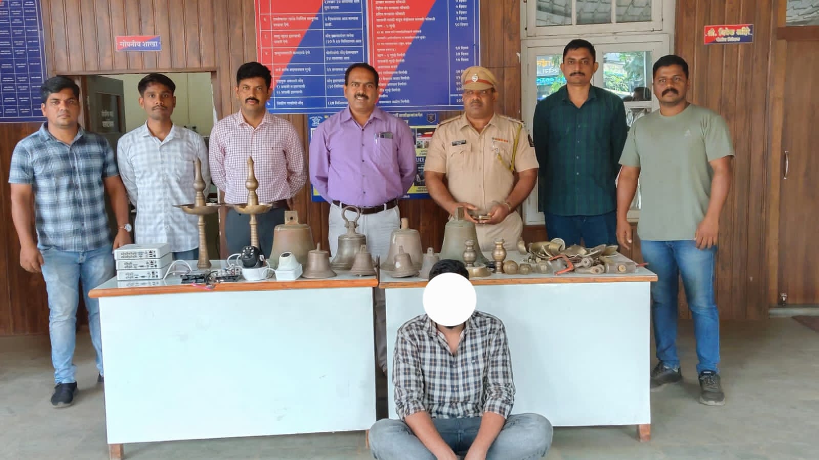 ३ ऑक्टोबर २०२५ रोजी खेड तालुक्यातील शिरगाव खुर्द-शिवाजीनगर येथील श्री काळकाई मंदिरातून पितळी घंटा व सीसीटीव्ही कॅमेऱ्याचा डीव्हीडीआर चोरीला गेल्याची तक्रार दाखल झाली होती. या गुन्ह्याच्या तपासादरम्यान तांत्रिक विश्लेषण आणि गोपनीय माहितीनुसार संशयित हा रायगड व रत्नागिरी परिसरात वावरत असल्याचे निष्पन्न झाले. त्यानुसार जिल्हा पोलीस अधीक्षक नितीन बगाटे, अप्पर पोलीस अधीक्षक बी. जी. महामुनी आणि उपविभागीय पोलीस अधिकारी शैलेश सणस यांच्या मार्गदर्शनाखाली पोलीस निरीक्षक विवेक अहिरे यांच्या नेतृत्वाखाली विशेष पथकाने सापळा रचला. या पथकात रोहिदास केंद्रे, पोलीस कॉन्स्टेबल अजय कडू, वैभव ओहोळ, विजेंद्र सातार्डेकर, कृष्णा दराडे आणि शिरीष साळुंके यांचा समावेश होता. आरोपी साठी लावलेला सापळा यशस्वी ठरवत पथकाने आरोपीच्या मुसक्या आवळल्या. चौकशीत आरोपीने रत्नागिरी जिल्ह्यातील खेड, दाभोळ, दापोली, मंडणगड, बाणकोट तसेच रायगड जिल्ह्यातील महाड व पोलादपूर परिसरातील मंदिरांतून घंटा व अन्य साहित्य चोरी केल्याची कबुली दिली आहे. आरोपीकडून पितळी धातूच्या घंटांसह अन्य मुद्देमाल जप्त करण्यात आला असून पुढील तपास सुरू असल्याचे पोलिसांनी स्पष्ट केले आहे.