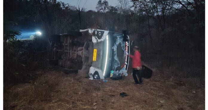 खेड – ( प्रसाद गांधी ) – रत्नागिरी जिल्ह्यातील खेड तालुक्यात शिमगोत्सवासाठी गावाकडे येणाऱ्या कोकणवासियांच्या बसला भीषण अपघात झाला. या अपघातात 25 जण जखमी झाले आहेत. खेड-धामणंद मार्गावरील एनवरे येथे बोरिवलीहून सापिर्ली गावाकडे येणारी खासगी आराम बस पलटी झाल्याने या अपघातात बसमधील २५ प्रवासी जखमी झाले असून त्यापैकी दोन जण गंभीर जखमी आहेत. सर्व जखमींवर कळंबणी उपजिल्हा रुग्णालयात उपचार सुरू आहेत.
