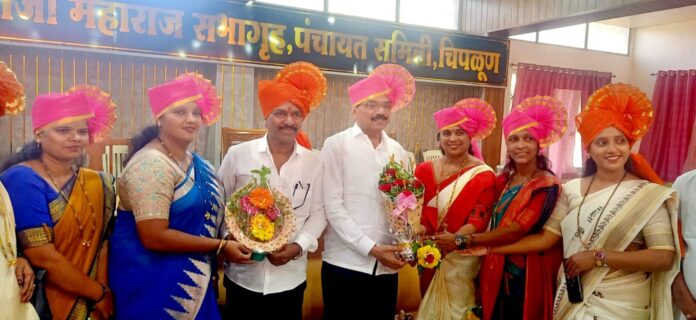 पंचायत समितीवर १४ जागा जिंकणाऱ्या महायुतीचा झेंडा फडकला आहे. आज मंगळवारी सकाळी ११ वाजता पंचायत समितीच्या छत्रपती शिवाजी सभागृहात सभापतीपदासाठी राष्ट्रवादीच्या सूर्यकांत खेतले यांचा तर उपसभापतीपदासाठी शिवसेनेच्या संदेश आयरे यांचा उमेदवारी अर्ज दाखल करण्यात आला. या दोन उमेदवारांचेच अर्ज दाखल झाल्याने निवडणूक बिनविरोध झाली. यावेळी आमदार शेखर निकम, माजी आमदार सदानंद चव्हाण, माजी सभापती धनश्री शिंदे, जिल्हा परिषद सदस्य पूजा निकम यांच्यासह महाविकास आघाडी तसेच राष्ट्रवादी, शिवसेना आणि भाजपचे म्हणजेच महायुतीचे पदाधिकारी व कार्यकर्ते मोठ्या संख्येने उपस्थित होते. चिपळूण पंचायत समितीच्या निवडणुकीत मतदारांनी त्रिशंकू कौल दिला होता. राष्ट्रवादी काँग्रेस (अजित पवार गट) ने स्वतंत्र निवडणूक लढवत ७ जागा जिंकल्या होत्या. तर भाजप-शिवसेना युतीच्या शिवसेना ४ आणि भाजपला ३ जागा मिळाल्या होत्या. निवडणुकीत युतीच्या नेत्यांनी राष्ट्रवादीला दरवाजे बंद केले होते परंतु सत्तेसाठी त्यांना राष्ट्रवादीलाच सोबत घ्यावे लागले. दुसरीकडे शिवसेना उद्धव बाळासाहेब ठाकरे गटाला ४ जागा मिळाल्याने सत्ता स्थापनेबाबत गेल्या महिनाभरापासून मोठी उत्सुकता निर्माण झाली होती. अखेरीस पंचायत समितीच्या सभापती-उपसभापती निवडीत राष्ट्रवादी काँग्रेस (अजित पवार गट) ने महायुतीसोबत जाण्याचा निर्णय घेत सत्ता स्थापन केली आणि सभापतीपद आपल्या पारड्यात पाडले. सुरुवातीला आमदार शेखर निकम हे उद्धव बाळासाहेब ठाकरे गटासोबत सत्ता स्थापन करणार आहेत अशी चर्चा होती. मात्र जिल्ह्यातील राजकीय समीकरणे लक्षात घेऊन अखेर राष्ट्रवादीने महायुतीसोबत हातमिळवणी करत सत्ता स्थापन केली. सभापती खेतले व उपसभापती आयरे यांचे अनेक मान्यवरानी अभिनंदन केले.
